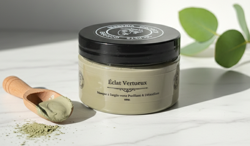 Le Éclat Vertueux – Masque à l’Argile Verte est un soin naturel purifiant, spécialement conçu pour les peaux grasses et mixtes sujettes aux brillances et aux imperfections. Riche en minéraux, l’argile verte agit comme un véritable détoxifiant en absorbant l’excès de sébum et en éliminant les impuretés accumulées.